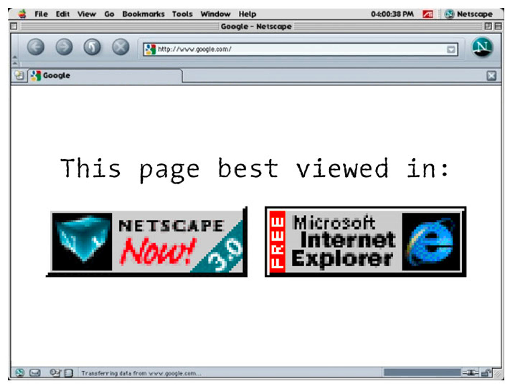 ์ด๊ฐ์ด ํ์คํ๋ฅผ ์์ ๋๊ณ Netscape, Microsoft, Mozilla 3์ฌ์ ์น์ดํ ์ ๊ฒฝ์ ์ด ๊ณ์ ๋ฒ์ด์ง๊ณ ์์๋ค. ๊ทธ๋์ ๋ถ์ํ ๊ฐ๋ฐ์๋ค์ ์์ฅ์ ์กด์ฌํ๋ ๋ค์ํ ๋ธ๋ผ์ฐ์ ์์ ์ ๋์ํ ์ ์๋๋ก ์น ํ์ด์ง๋ฅผ ๋ง๋ค์ด์ผ ํ๊ธฐ ๋๋ฌธ์ ์ฉ๊ณ ์์ ํ๋ฉด์ ์นํ์ด์ง๋ฅผ ๋ง๋ค์ด ๋๊ฐ์ผ ํ๋ค.
