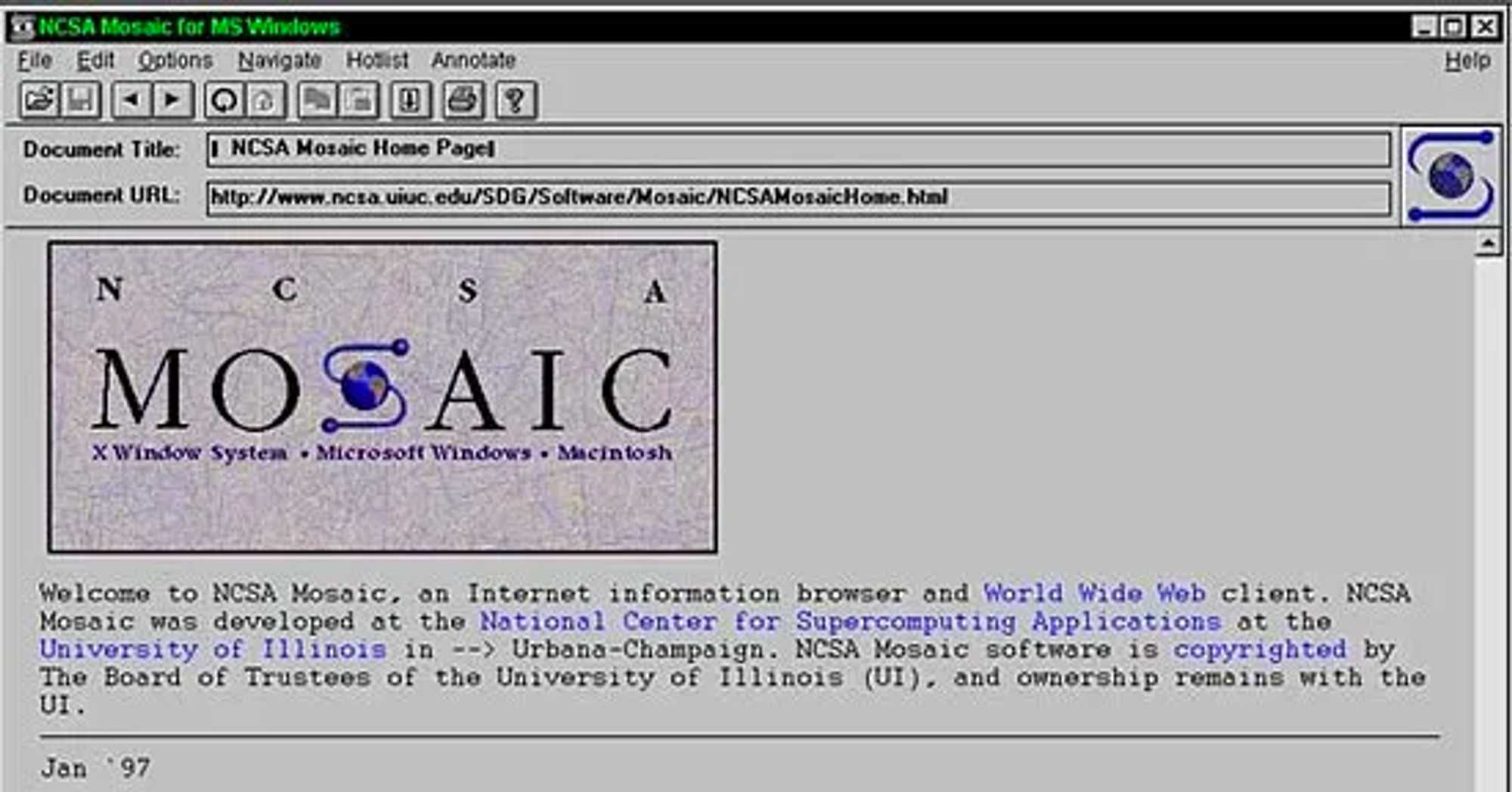1993๋ , ์ง์ง๋ง๋ค ์ปดํจํฐ๊ฐ ์์๋ ๊ทธ ์์ ์๋ ์ปดํจํฐ๋ฅผ ์ ๋ชจ๋ฅด๋ ์ฌ๋๋ค๋ ์ฝ๊ฒ ์ธ ์ ์๋ UI ์์๊ฐ ๋ํด์ง MOSAIC ์น๋ธ๋ผ์ฐ์ ๊ฐ ์์ฅ์ ๋์ค๊ฒ ๋๋ค.