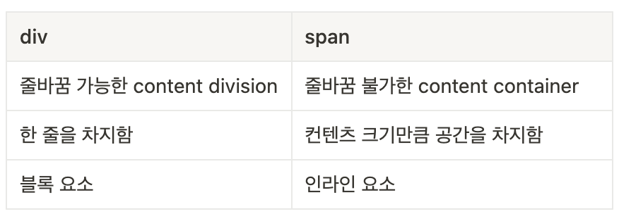 <div>๋ ๋ฐ์ค ํํ๋ก ์์ญ์ด ์ค์ ๋๊ณ ๋ฐ์ค ์์ ์ ๋ ฌ๋๋ค. ํ์ง๋ง <span>์ ์ค ๋จ์๋ก ์์ญ์ด ์ค์ ๋๊ธฐ ๋๋ฌธ์ ๋ฐฐ๊ฒฝ์์ ๊ธธ์ด๊ฐ ๋ค๋ฅด๋ค. ๋๋ถ์ด <div>๋ block ์์ฑ์ ๊ฐ์ง๊ธฐ์ width, height ์ง์ ์ด ๊ฐ๋ฅํ์ง๋ง <span>์ inline ์์ฑ์ ๊ฐ์ง๊ธฐ ๋๋ฌธ์ ๋ถ๊ฐํ๋ค๋ ์ ๋ ์ฐธ๊ณ ํ์.