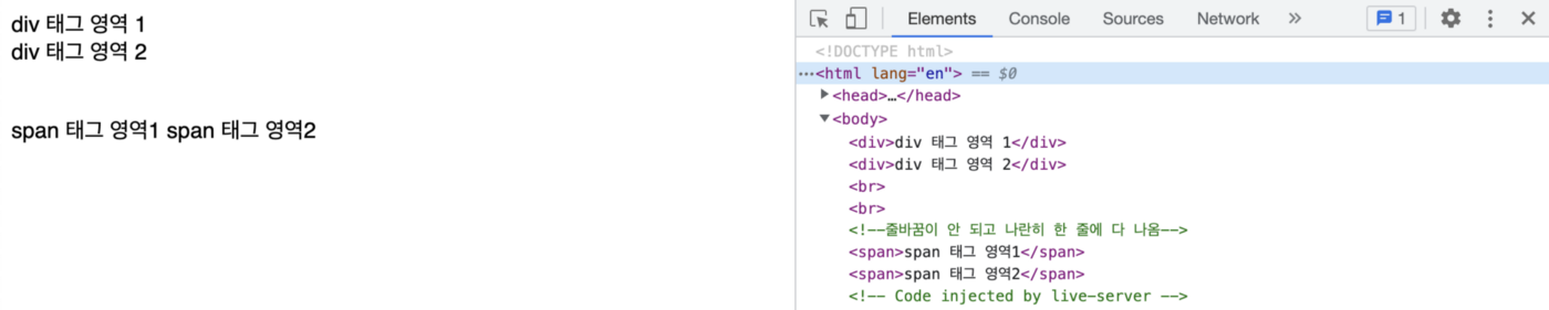 <div>div ํ๊ทธ ์์ญ 1</div>