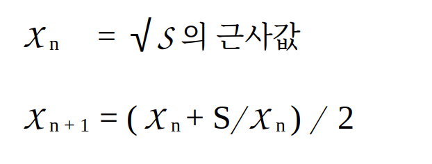 ๊ทผ์ฌ๊ฐ = (๊ทผ์ฌ๊ฐ + (์๋์ซ์ / ๊ทผ์ฌ๊ฐ) / 2