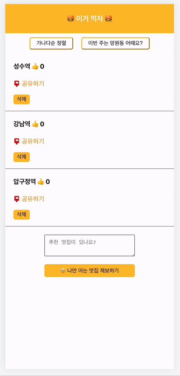 ์น ์ฌ์ดํธ ๋ด์์ ์ฌ์ฉ์๋ค์ด ์์ ๋กญ๊ฒ ๋ง์ง ์ถ์ฒ ๊ธ์ ์ฌ๋ฆด ์ ์๋ ๊ธฐ๋ฅ์ ๊ตฌํํ๊ณ ์ถ๋ค.