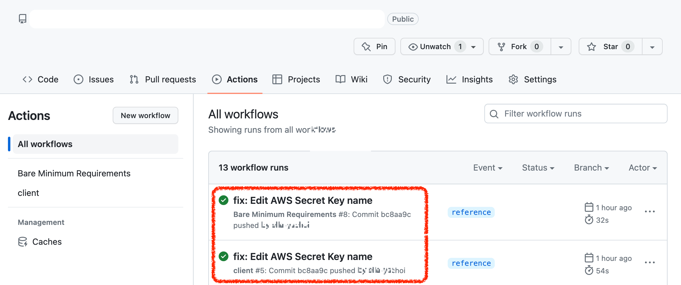 2. ๊นํ์ ํด๋น repository > Actions์์ ํ์ธํ๋ค.