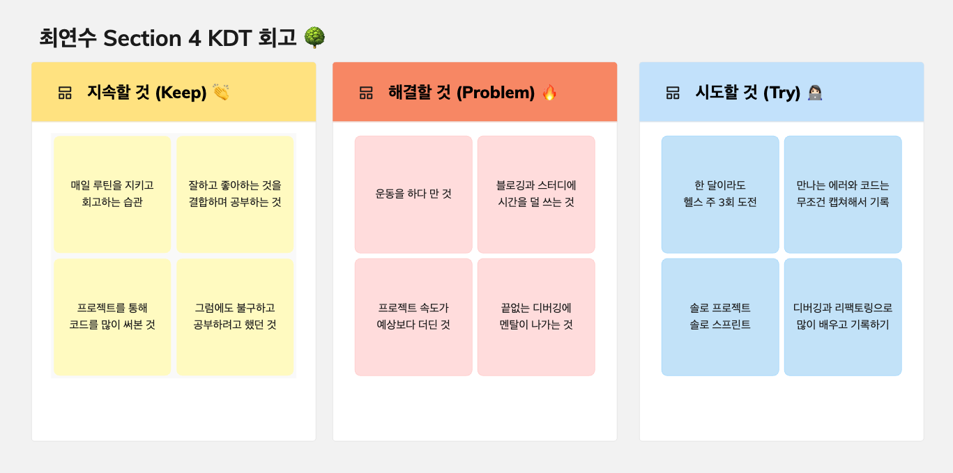 λ§€ Sectionλ§λ€ κ·Έλ λ―, μ΄λ² Section 4μμλ μ’ μ’ λ©νμ΄ κΊΎμΈ μ μ΄ μμλ€. νΉν μλ‘ νλ‘μ νΈ λ μ€λ ₯μ΄ μ λλΌνκ² λλ¬λλ©° μ’μ μ κ²½ννλ€. νμ§λ§ κ·Έλλ§λ€ λ μμ μ μ λ©΄μΌλ‘ λ§μ£Όνλ©° λ€μ λ¬λ €μΌμ§ νλ©° λ€μ§ν μ μμλ 건 νκ³ νλ μ΅κ΄ λλΆμ΄μκ³ , μ²μ§μ§ μκ³ μΌμ΄λ μ μμλ 건 κ·ΈλΌμλ μ§μΌμΌ νλ λ£¨ν΄ λλΆμ΄μλ€. 곡λΆκ° λ©νμΈμ§λ₯Ό κΈ°λ°μΌλ‘ ν΄μΌ μν μ μλ κ²μ²λΌ, μΆμ μ΄μκ° λλ λμ κ°μ κ³Ό μκ°μ μ μ½μ΄λ΄λ λ©νμΈμ§κ° νμνλ€λ κ²μ μ€κ°νλ μμ¦μ΄λ€.